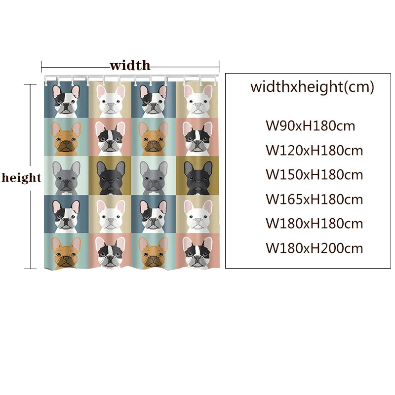 3D Printing Cartoon Bulldog Bath Screens Bathroom Shower Curtain Unicorn Curtain Christmas Gift Decor Multi-size Shower Curtain