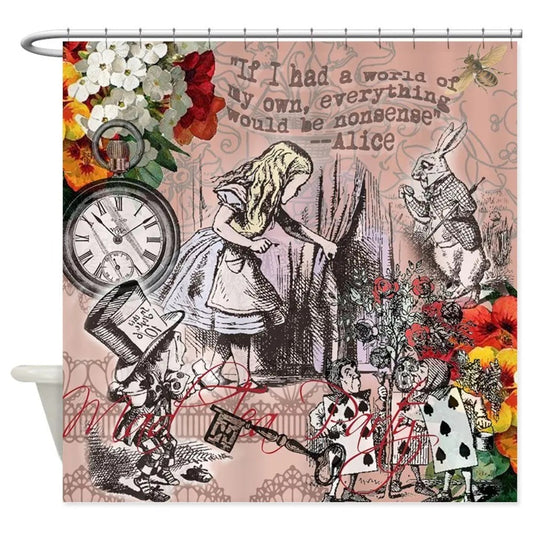 Alice In Wonderland Party Decorations Backdrop Shower Curtain,Fantasy Landscape Mushroom Art,Cloth Fabric for Bathroom Set,Hooks