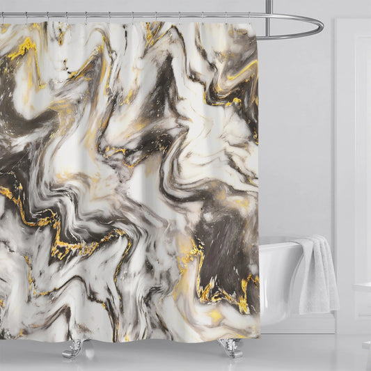 Abstract Marble Shower Curtain Blue Green Purple Jade Texture Gold Stripes Ombre Watercolor Paint, with Hooks