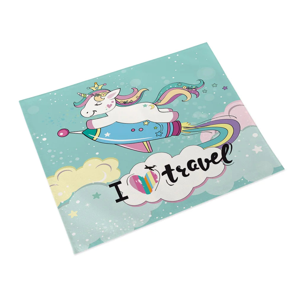 45x32cm Cartoon Pink Table Mat Unicorn Individual Placemats Coasters Set Pad On The Table Cup Pad Place Mats For Dining Table